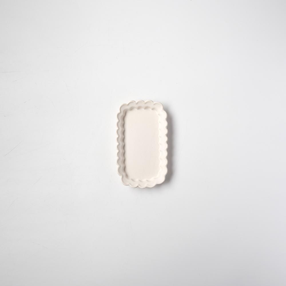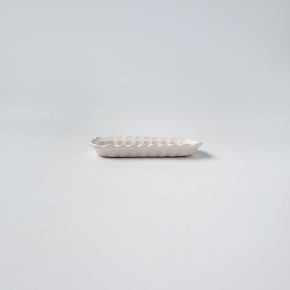 ひらひらと波打つ縁が、作品にやさしい動きを添えています。